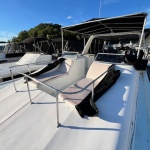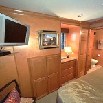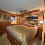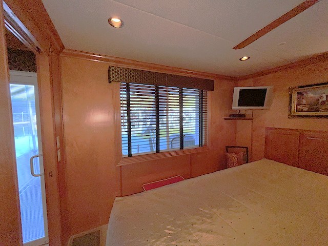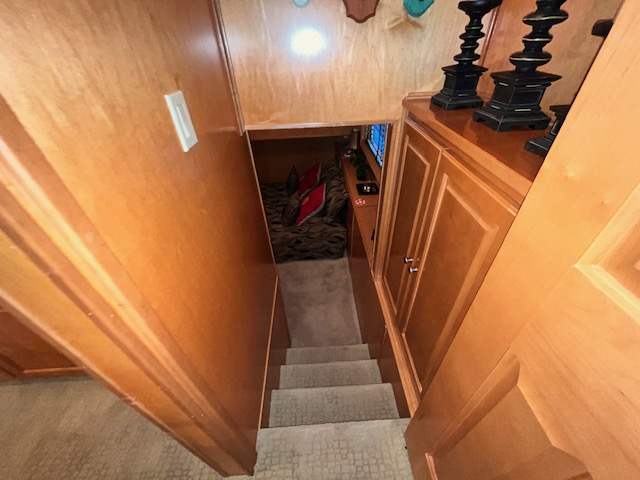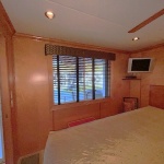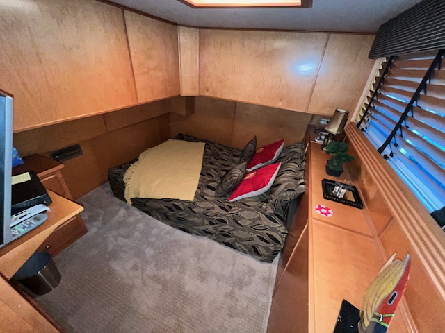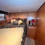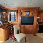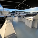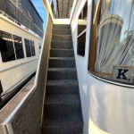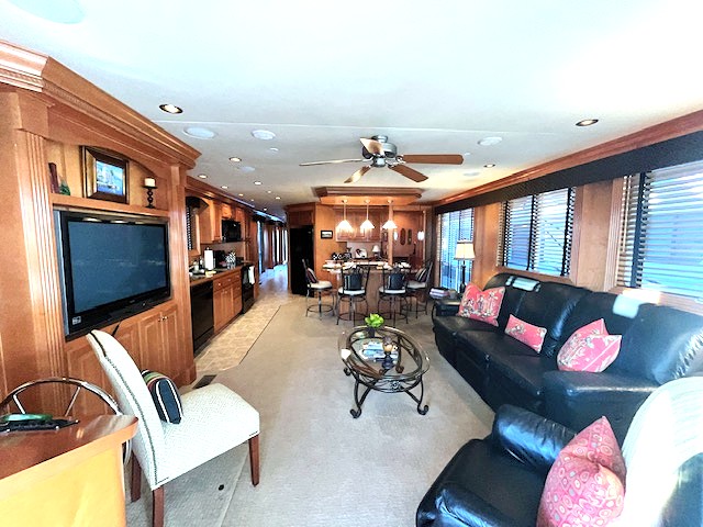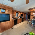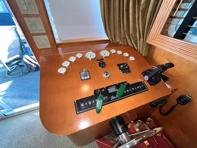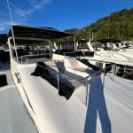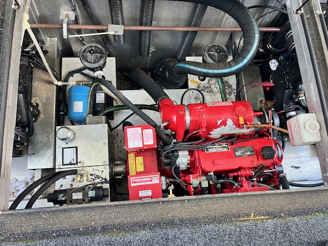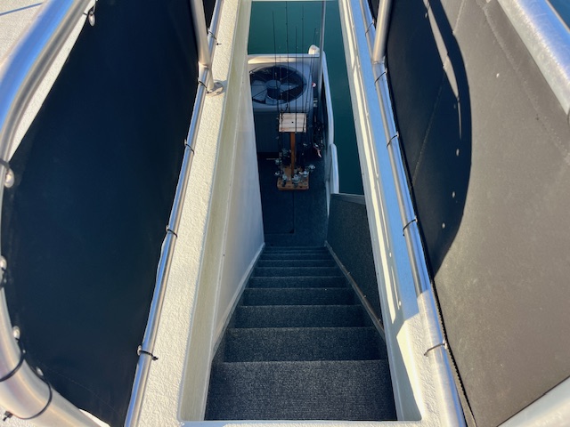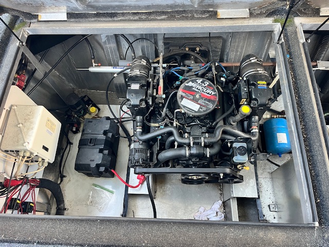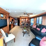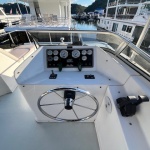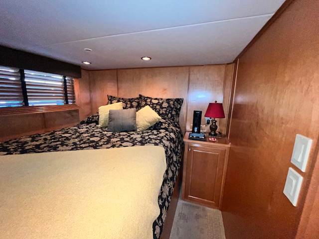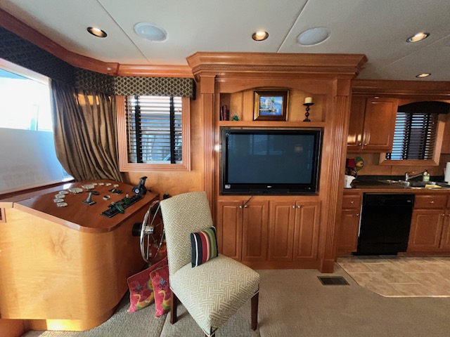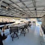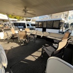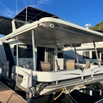 Exterior options and features listed below. Propulsion power: Twin 4.3 MerCruiser’s (Approx 215 hrs.) MMC controls Bow thruster. 14KW Safe CO generator with approx. 1300 hrs. Full control flybridge with canvas sport top. 24 Ft Canvas Party top. With rear arch supports. Side stair roof access fore and aft. Lower rail hard sides and full upper/lower 1 ½ inch Anodized rail PKG. 1 PWC ramps. PWC Fuel station. Fore deck gang plank. 3 Station Lake Wash Down. 3 Ton HVAC system installed 2019 Roof gelcoat in 2019. Much More! SUPER CLEAN!