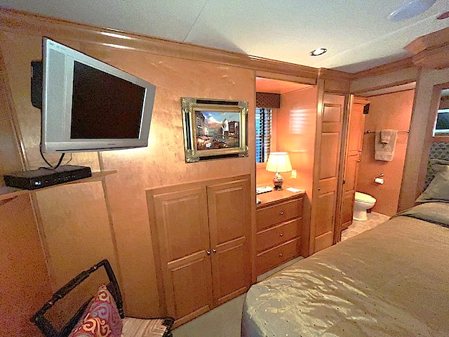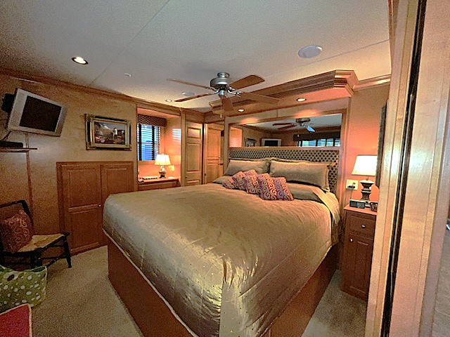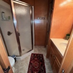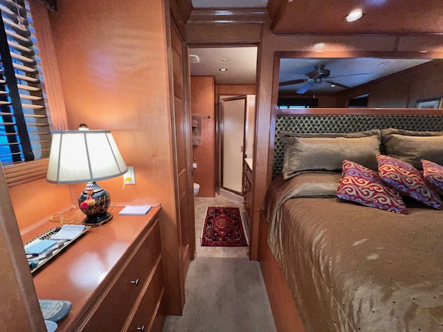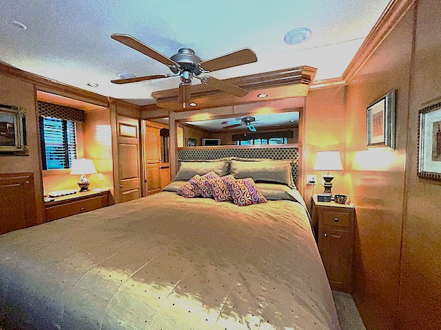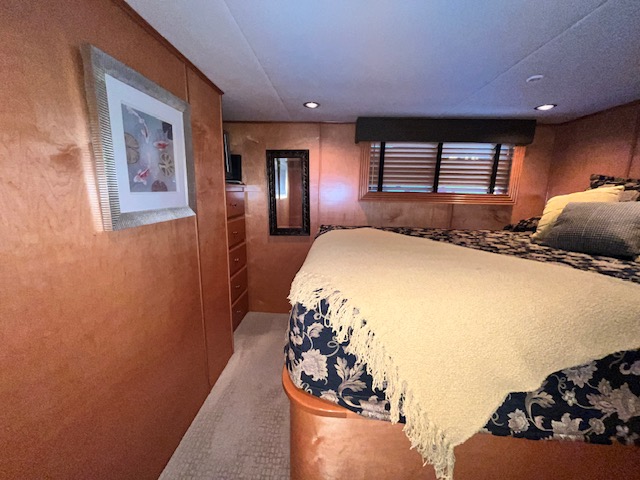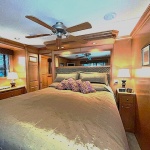 Features: True full Side Hall floor plan with 4 staterooms and 2 full baths. Queen upper and lower staterooms, full in rear and a private King master. 2 spacious baths with Angled showers and 36” vanities in both with Raritan Atlantes heads.