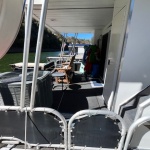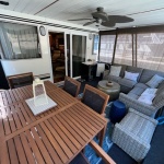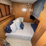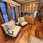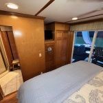 Exterior options and features listed below. Propulsion power: Twin 3.0 Mercruiser’s (Approx 280 hrs.) Westerbeke 12.5 KW generator and CO stack exhaust. Front and Rear side stair roof access. Full flybridge with Bimini top. 24 Ft Party top with fiberglass under sheet. Roof entertainment bar with power, hot and cold water and refrigerator. New Front enclosure and front and rear deck gates. Water Slide and one PWC ramp. 3 Ton HVAC system. (2016) Beautiful well maintained boat. Much More! SUPER CLEAN!