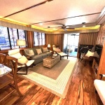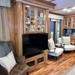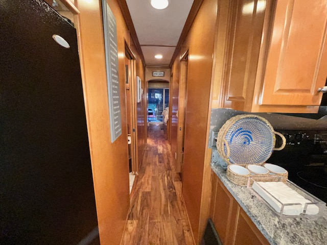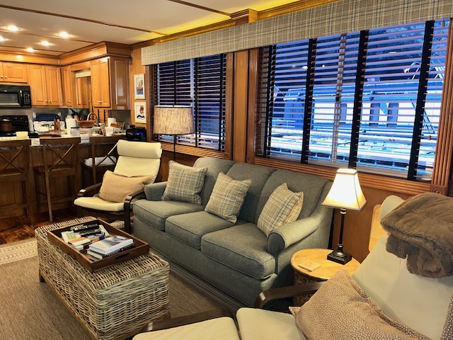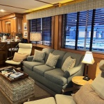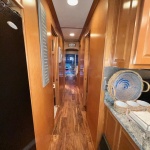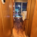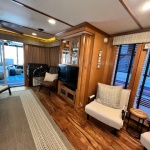 Spacious front deck area with front enclosure. 2 baths with angled showers with Raritan Atlantes heads. Large salon with custom entertainment system, flat panel TV and surround sound. Beautiful natural Honey interior hardwood and solid cabinets, complimented with Acacia flooring and tile bathrooms. Wood blinds with tape and fluted wood window collars.
