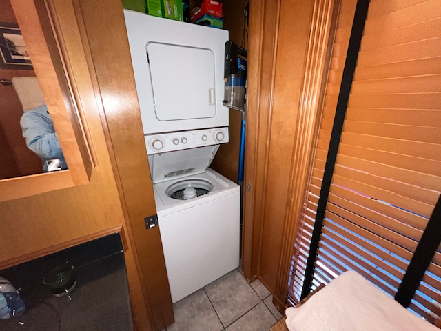 Stack washer/dryer located in the guest bath. 95% UV tint block added this year for year-round efficiency.