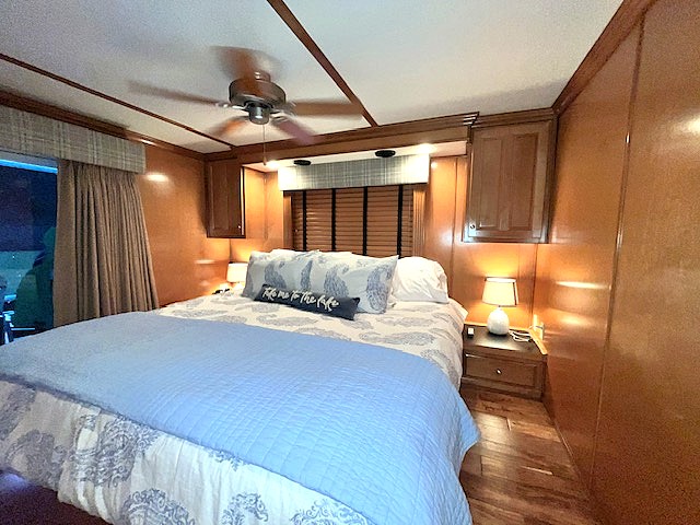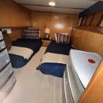 Features: Center hall floor plan with 4 staterooms and 2 full baths. Queen upper and lower staterooms, twins in rear and a king master.