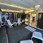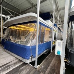 The exterior features large fore and aft decks. Aft deck has 2 rear deck lockers, with front and rear enclosures. Roof top: Full control flybridge Bimini-top, Rood bar and additional grill bar.