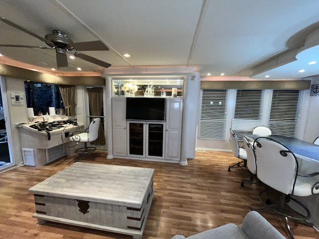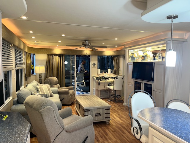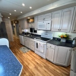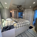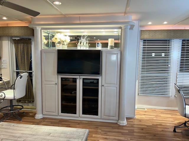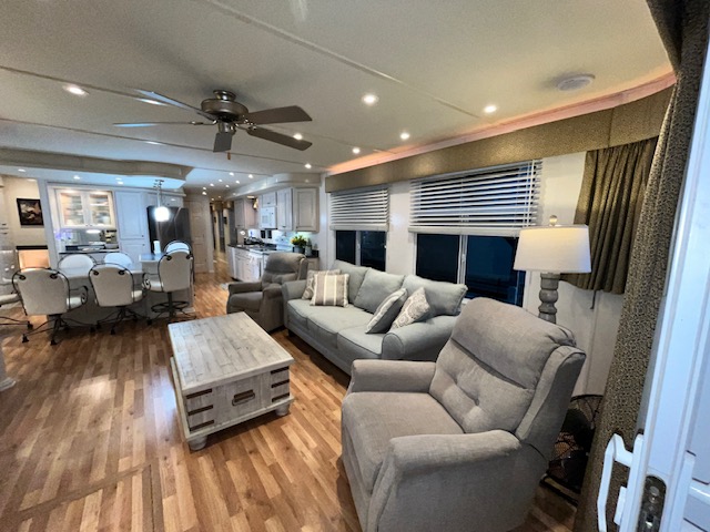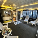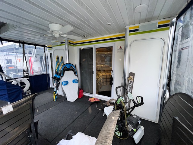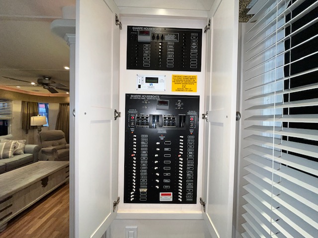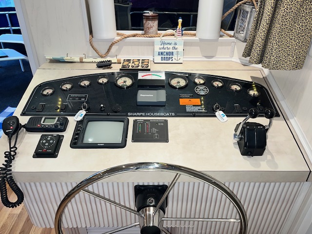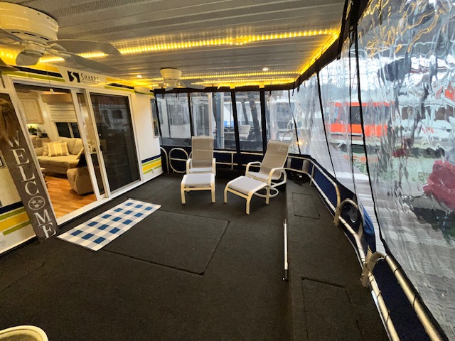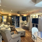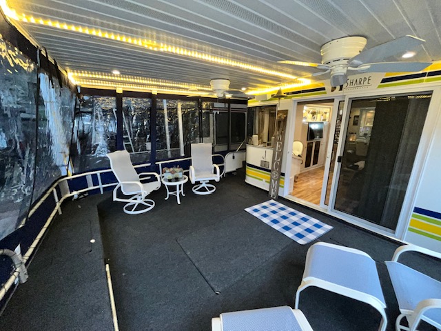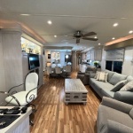 The Beautiful SHARPE Fully Insulated Houseboat features beautiful White Ash hardwood paneling, solid cabinets and doors. Large salon for entertaining guests. Nice interior upgrades. LVP flooring in salon, galley and hallway. Large sofa and 2 recliners complement the interior along with a 6-place bar T shaped bar. Custom entertainment system with flat panel TV. Port side full electric galley. This beauty boasts 4 large staterooms with a side hall plan.