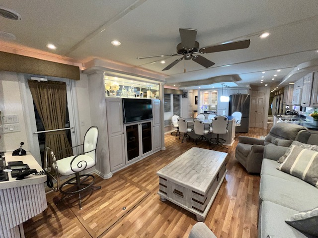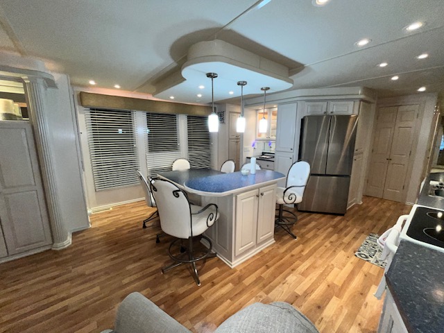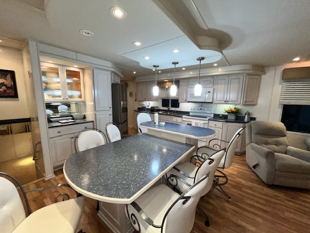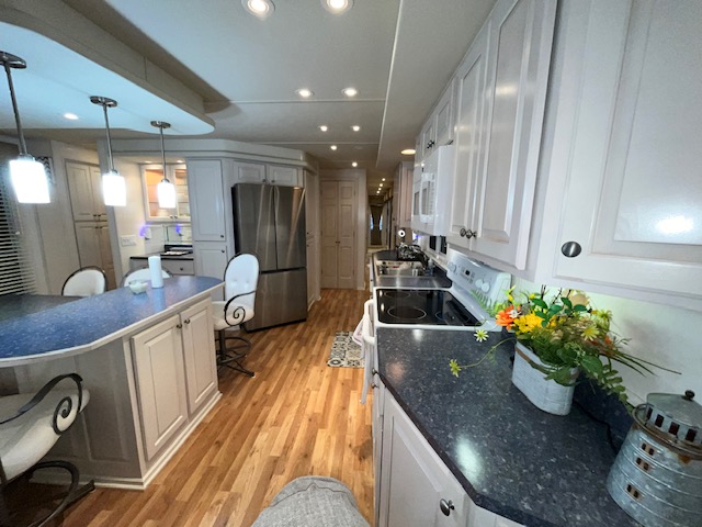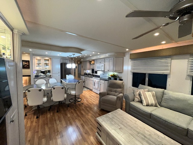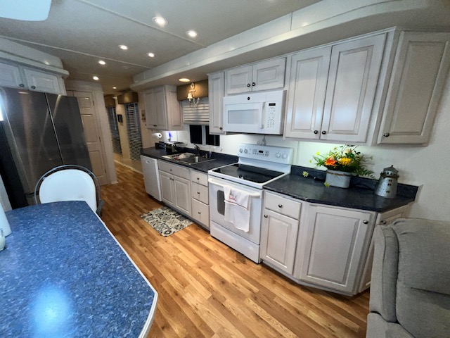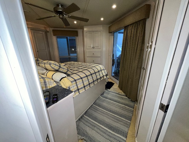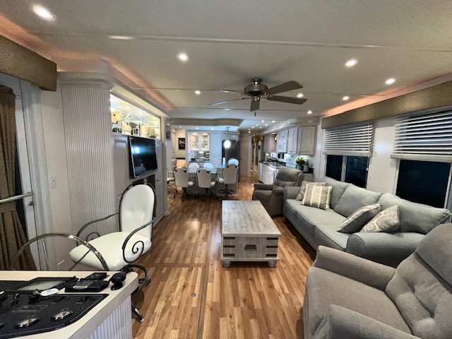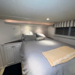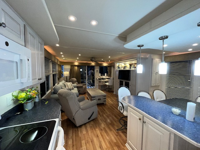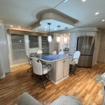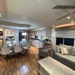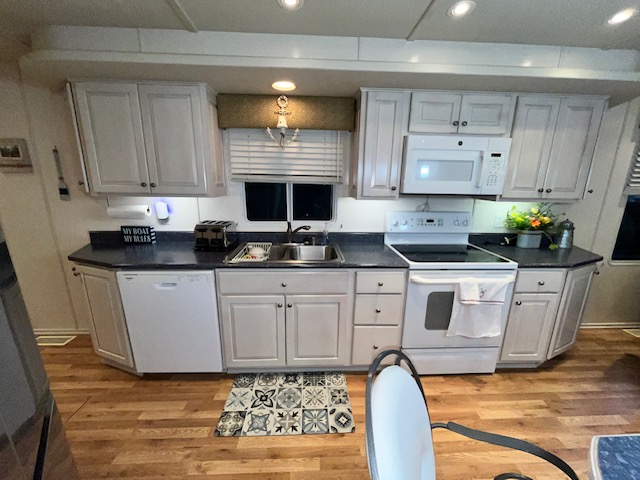 The Beautiful SHARPE Fully Insulated Houseboat features beautiful White Ash hardwood paneling, solid cabinets and doors. Large salon for entertaining guests. Nice interior upgrades. LVP flooring in salon, galley and hallway. Large sofa and 2 recliners complement the interior along with a 6-place bar T shaped bar. Custom entertainment system with flat panel TV. Port side full electric galley. This beauty boasts 4 large staterooms with a side hall plan.