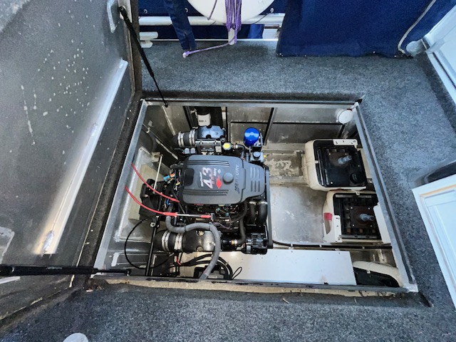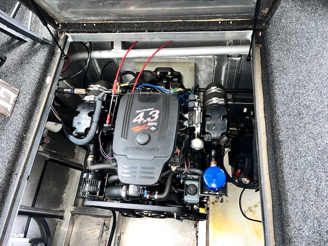 Power is provided with Twin 4.3 MPI MerCrusiers and Bravo drives (55 hrs.), A 15kw Westerbeke gen-set (104 hrs.) 100-amp shore svc and 3000-watt inverter with 6 batteries.