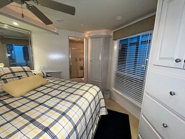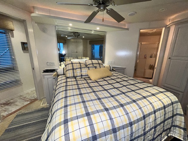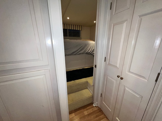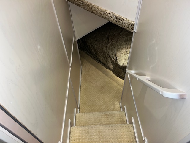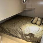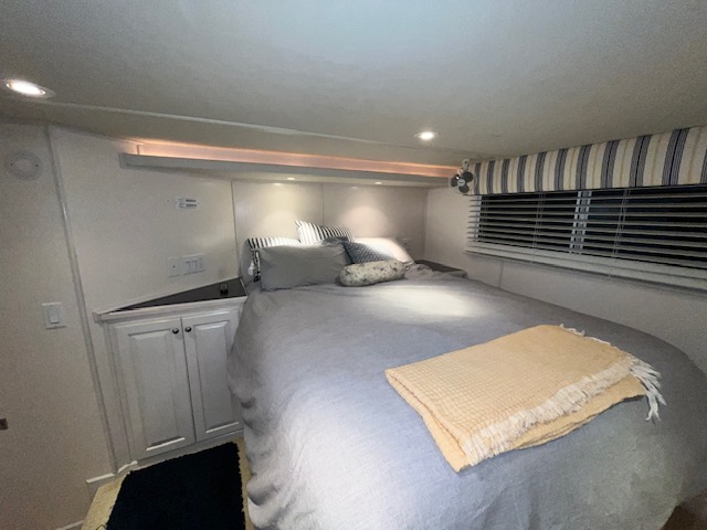 The forward upper stateroom is a queen, 2 lower cuddies have full beds, and the master is a King. 2 full baths with Raritan atlantes heads.