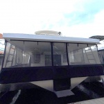 The exterior features fore and aft decks with rail gates. Fore deck with bow walk through entry and retractable gangplank. Aft deck has 2 rear deck lockers. 2 heavy duty ramps. Front and rear enclosures.