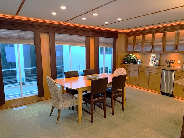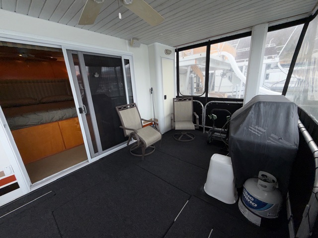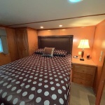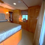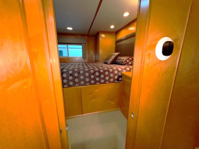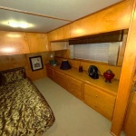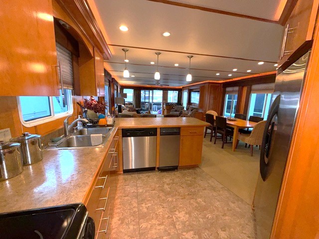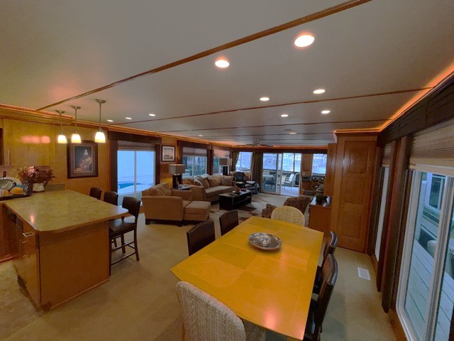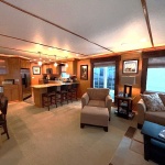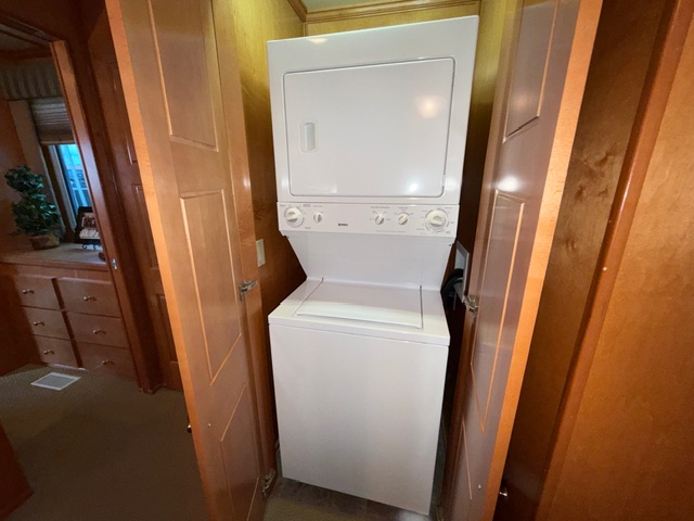 This beauty boasts 4 large staterooms. The forward upper stateroom has a queen walkaround bed, The lower forward queen stateroom has major storage with sink and vanity. 2 full beds in lower rear stateroom. The master is a King facing the stern of the boat which gives fantastic waking views. 2 full baths: Forward featuring 4’ step in shower with vanity, the master features a tub shower combo. Both baths have household tank style heads with full MSD septic system. Stack washer/dryer located in hallway closet.