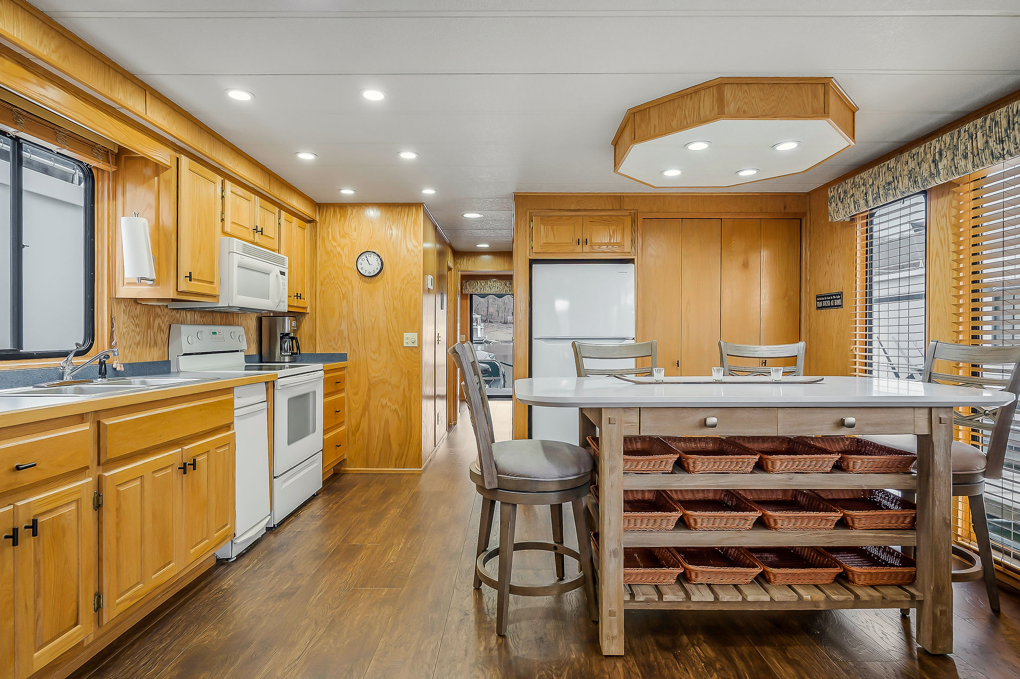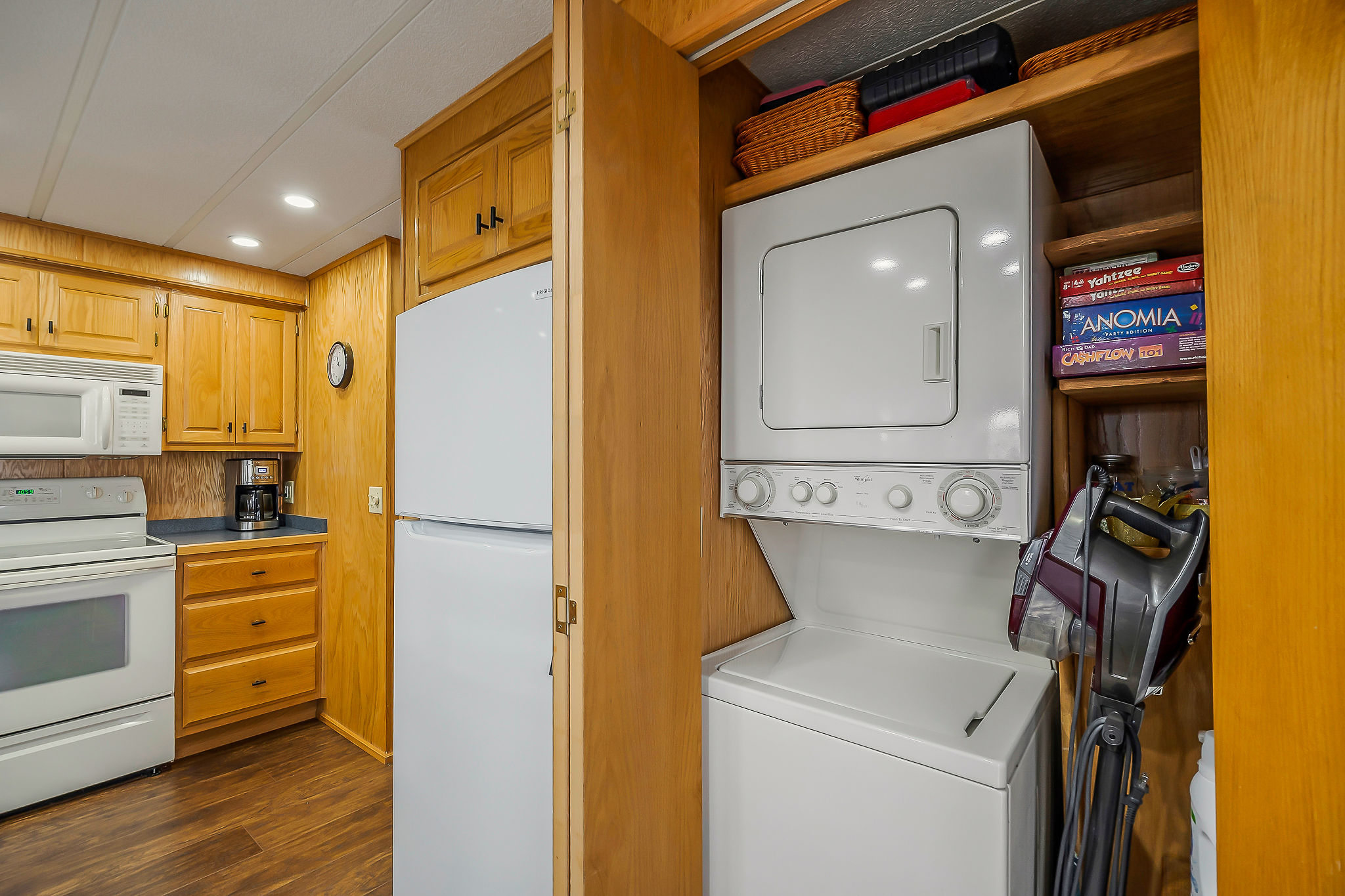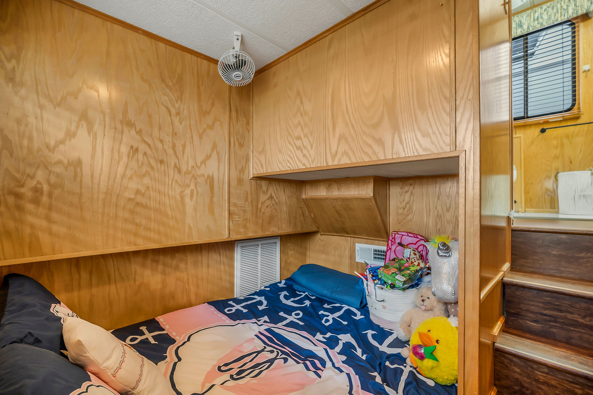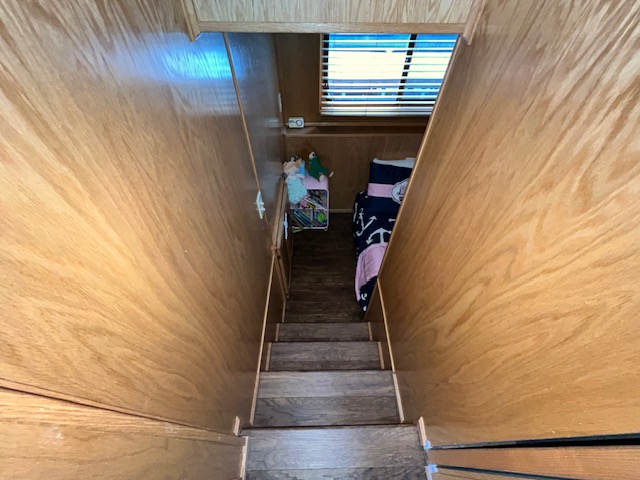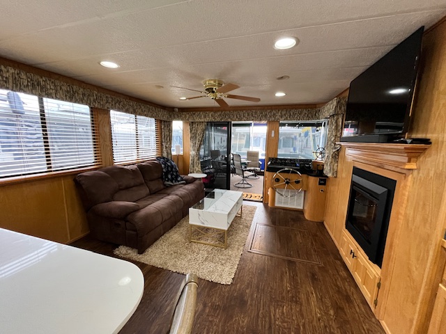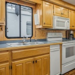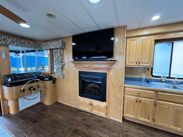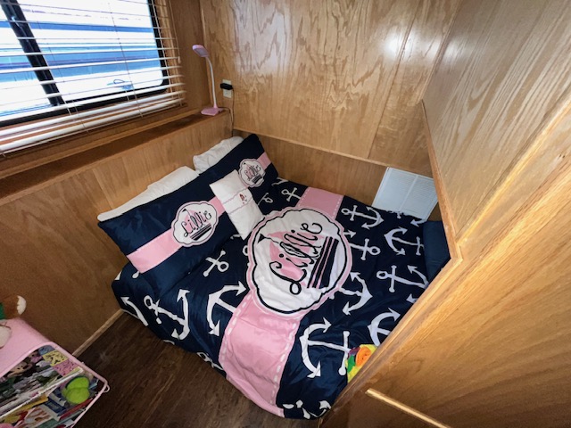 Features: Insulation PKG. Center Hall floor plan with 3 staterooms and 1 full bath. Queen Master and full upper and lower staterooms. Newly remodeled bath with custom tile shower and a new Raritan Atlantes head. Large salon with custom entertainment system, flat panel TV and electric fireplace. Microfiber wall hugger recliner/sofa. Beautiful medium oak interior hardwood and solid cabinets, complimented with new LVP flooring throughout. Full electric galley with: Electric refrigerator 30” solid surface range, microwave, and trash compactor. A stack washer/dryer is in the laundry closet.