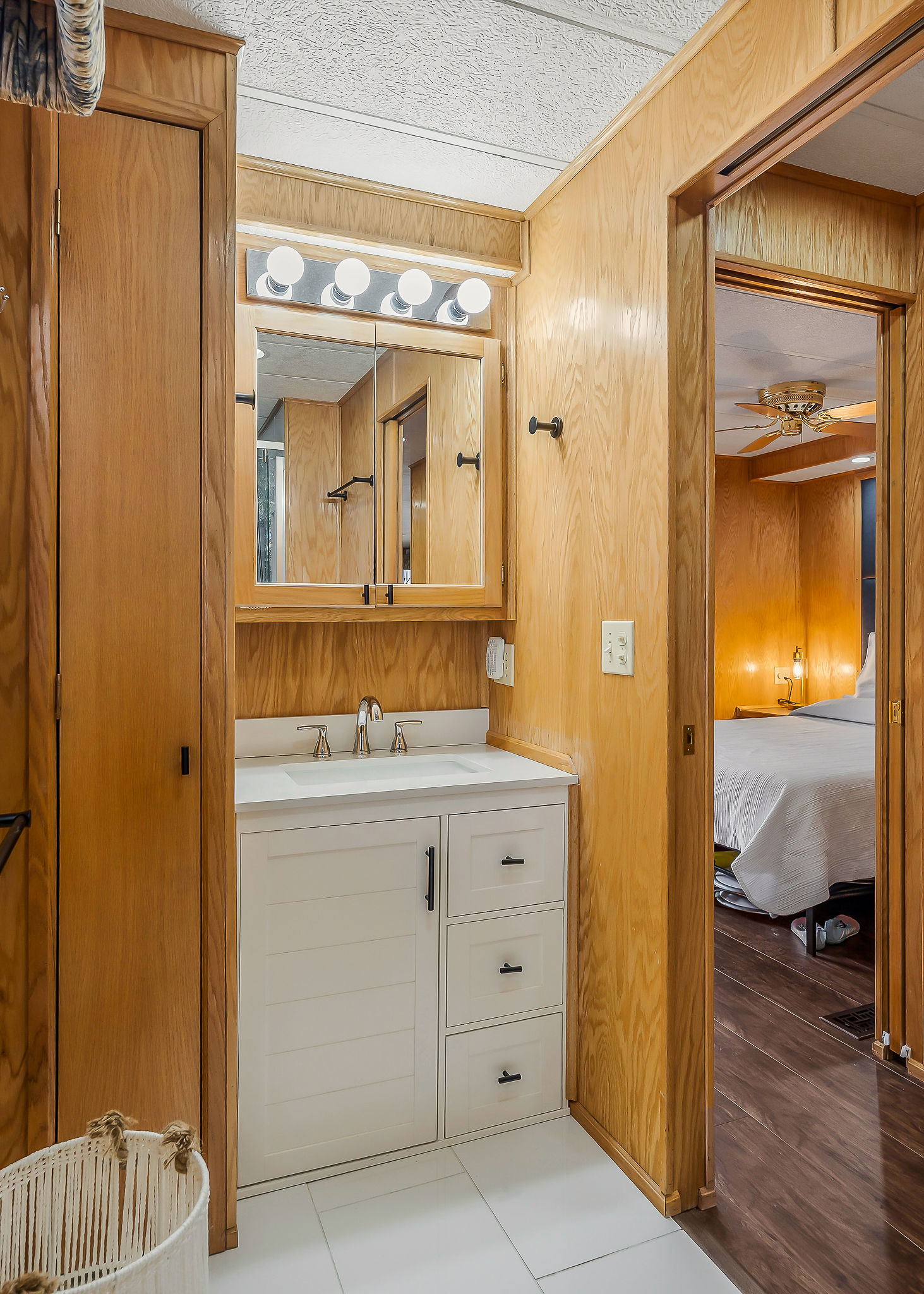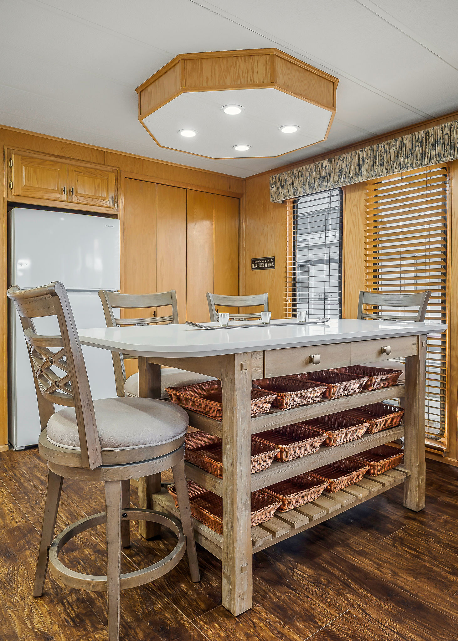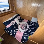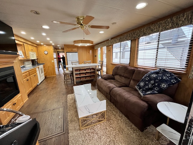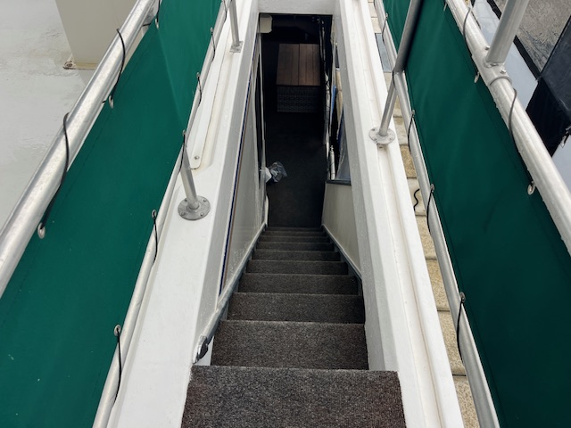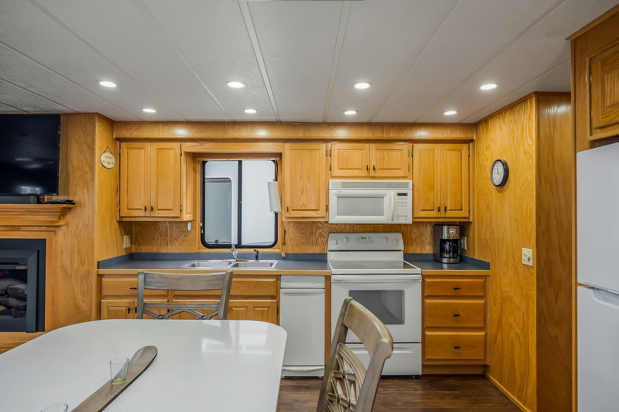Features: Insulation PKG. Center Hall floor plan with 3 staterooms and 1 full bath. Queen Master and full upper and lower staterooms. Newly remodeled bath with custom tile shower and a new Raritan Atlantes head. Large salon with custom entertainment system, flat panel TV and electric fireplace. Microfiber wall hugger recliner/sofa. Beautiful medium oak interior hardwood and solid cabinets, complimented with new LVP flooring throughout. Full electric galley with: Electric refrigerator 30” solid surface range, microwave, and trash compactor. A stack washer/dryer is in the laundry closet.