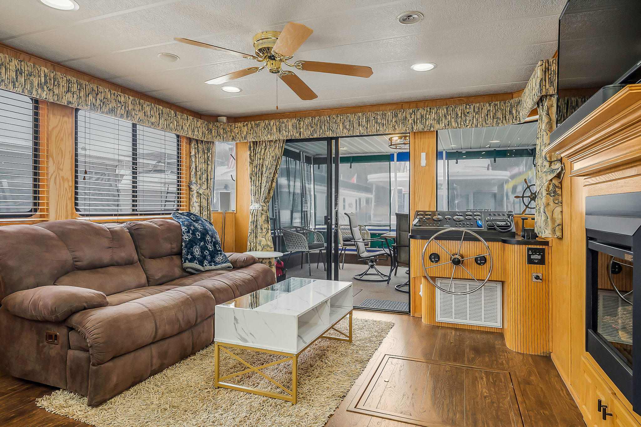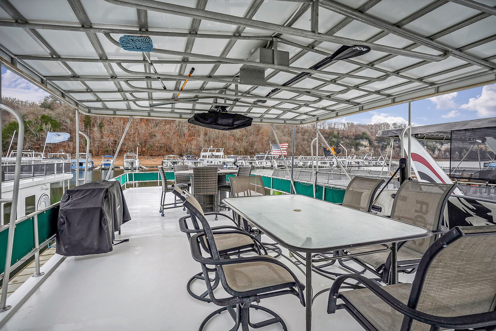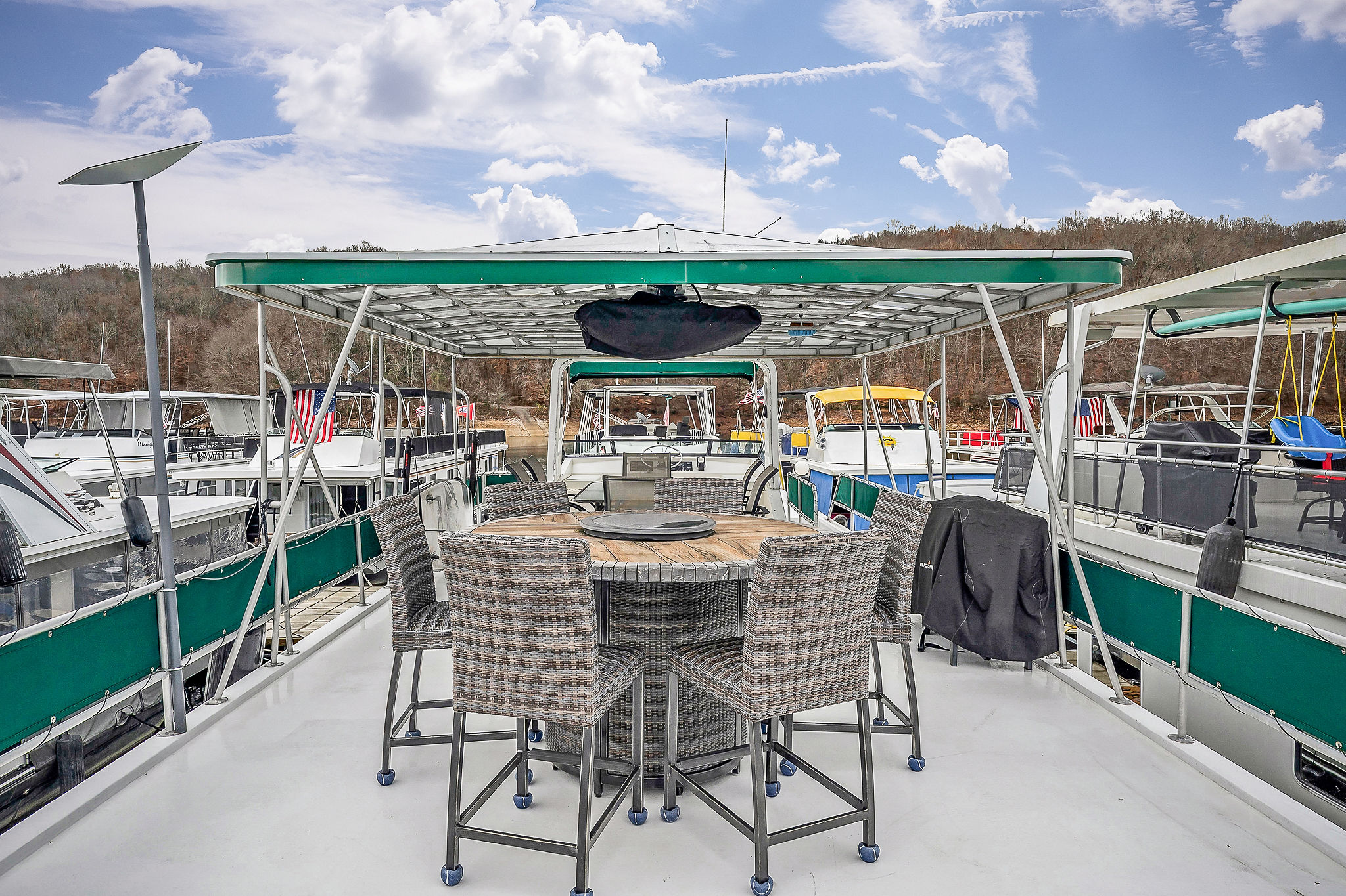 (Approx 415 hrs.) Apha drives (Full SVC in 2021) Roof gelcoat 2021. 2500-watt Inverter with new batteries in 2024. Westerbeke 12.5 KW generator. 2215 hrs. Full control sun lounger flybridge with canvas Bimini top. 20 Ft Aluminum covering Party top. (No leaking!) . Roof Furniture PKG with fire pit. Front enclosure with custom front deck furniture. PWC ramp w/ electric winch. 2 ½ Ton HVAC system Beautiful well maintained boat. Much More! SUPER CLEAN! Call or txt Tony Ashley 931-261-4713 for private showing. Email is tony@tnhouseboats.com