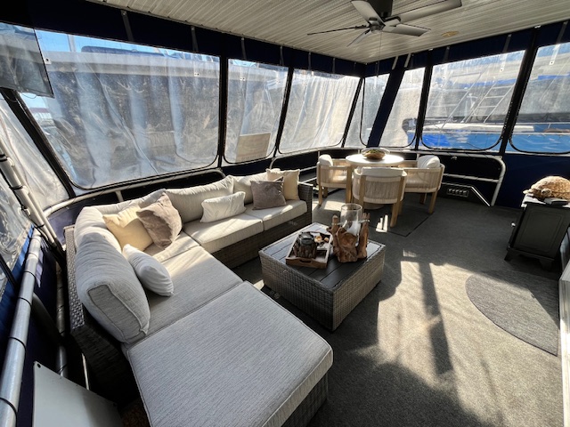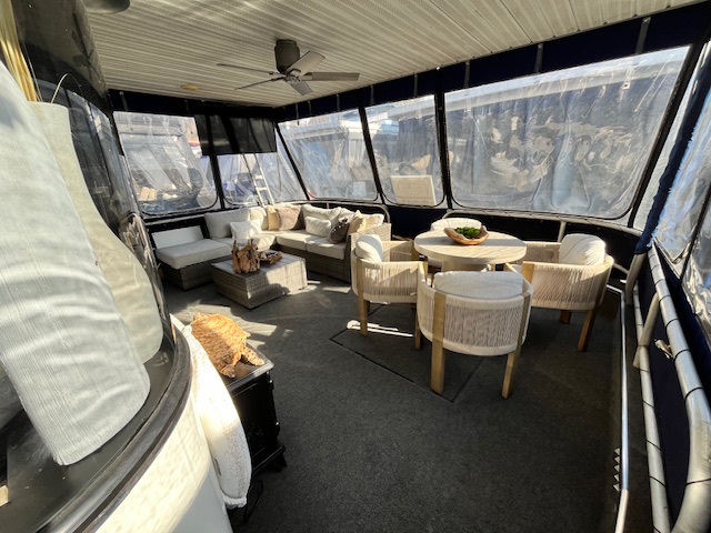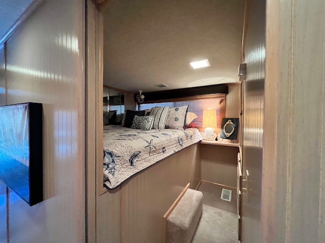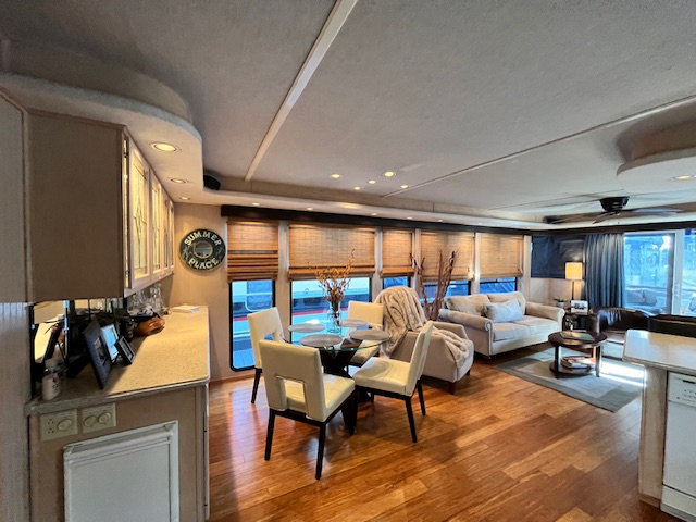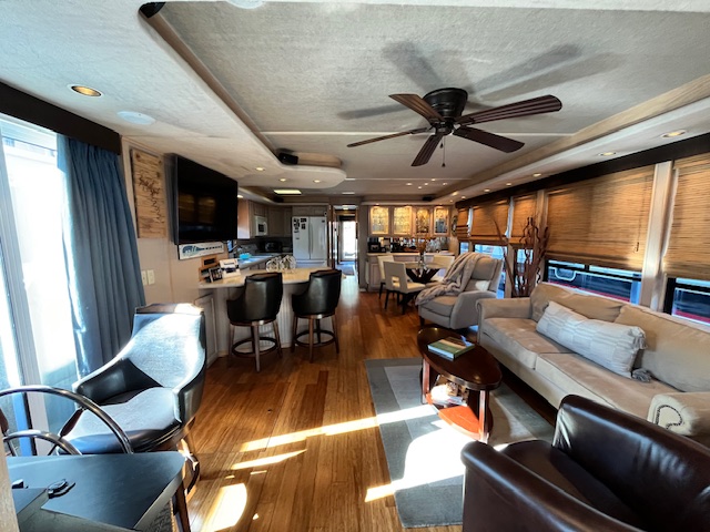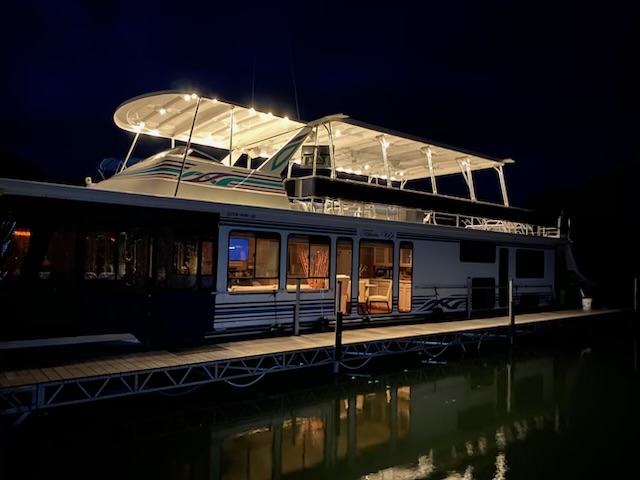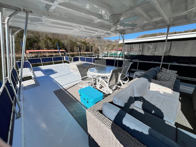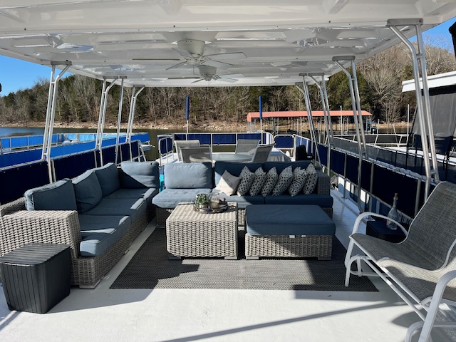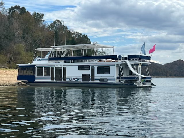 This beautiful meticulously maintained houseboat features a traditional Center-hall floor plan with 4 staterooms and 1.5 baths. A full electric galley with electric range, microwave, Refrigerator, dishwasher, and additional icemaker in a side bar area. The upgraded striking interior features beautiful bamboo flooring, with bamboo roman shades, updated cornice boards, curtains, and Corian counter tops. All interior furniture was updated as well. The power is provided by 3.0-liter Merc’s with only 450 hrs. A 15 kw Westerbeke provides electric power away from the dock with only 1960 hrs. Also included is a 3000 Trace inverter. The exterior of the vessel is equally impressive! The current owners elected to have a custom 36 Foot Fiberglass party-top installed in 2019. Front and Rear enclosures. Water Slide. Front boarding gang plank. Sea Deck adorns the rear deck, swim platform and rear staircase which is a side stair and not a spiral. Also included is an extensive furniture PKG. This beautiful Sumerset still has her original exterior SHINE and has been well maintained. Recent maintenance: HVAC replaced 2021 and new gelcoat in 2022. Located on Center Hill Lake. Call or txt Tony Ashley @ 931-261-4713 for a private appointment. Our email is tony@tnhouseboats.com